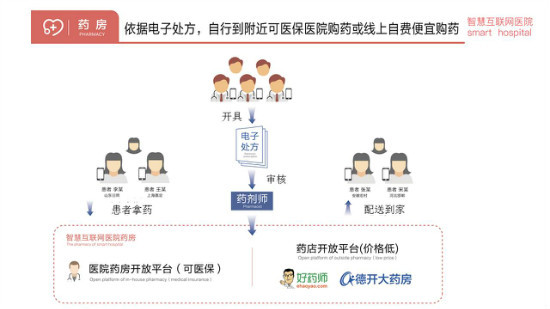 开药:好大夫在线互联网医院主要有两个方式,一种类似于上述检查环节的操作方式,即线上医生开出电子处方,通过药剂师审核后,会被分配给当地在线的医生,医生抄成纸质处方,患者去找这位当地医生拿药,并可以医保报销;另一种主要针对自费药或自费患者,可以通过线上药店和线下药房完成配送。