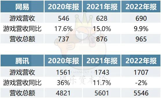 腾讯与网易最近3年的游戏营收及营收总额变化图