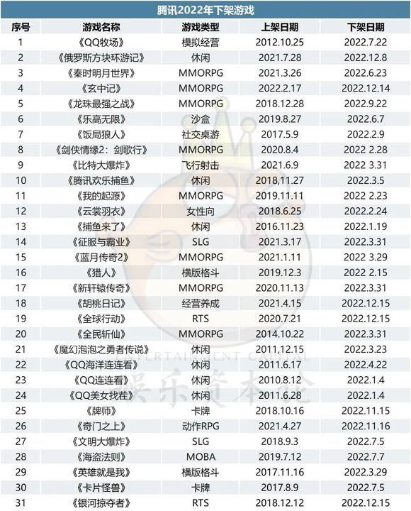 3、腾讯一共下架了31款游戏
