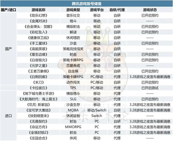 腾讯目前已有版号的储备产品