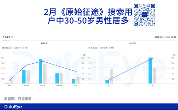 单看2月《原始征途》搜索用户中,30-50岁男性居多。