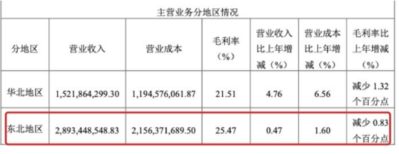 通过财报看到,在2020年时,桃李面包在东北收入为28亿,较上年同比增加5.14%,毛利率减少了5.61%。