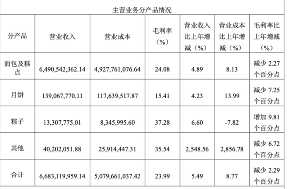 其他的产品,像是粽子、月饼,在2022年销售收入只有1.33亿、1.39亿,和面包的64.9亿,是天地之差。