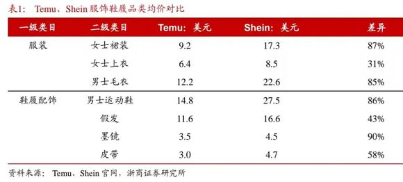浙江证券在其今年1月发布的《拼多多:Temu有望抓住美国电商性价比赛道机遇》中曾做过比较,Temu上服饰鞋履单品价格低于SHEIN 30%以上,家居百货价格低于亚马逊40%以上,部分价格甚至低了一倍以上;客单均价方面,Temu约为25美元,SHEIN约为75美元。