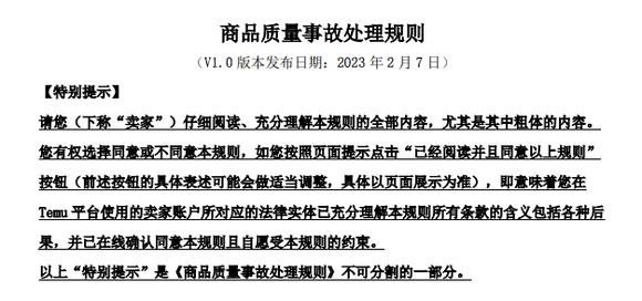 不只价格,还有质量严控,比如“买家投诉产品问题,罚款卖家5倍供货价”、“产品被查有安全风险,一单罚款1万元”等政策。