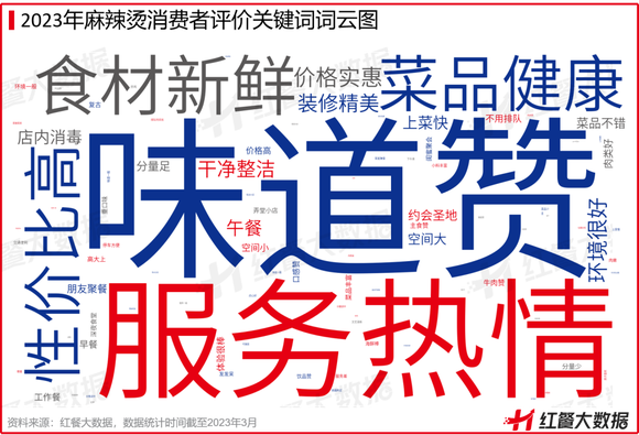 红餐大数据显示,在麻辣烫消费者的消费评价词频中,“味道赞”“服务热情”“食材新鲜”“菜品健康”出现的频次较高,其次才是“性价比高”“价格实惠”。可见,消费者对麻辣烫的关注度已经逐步从价格转移到食材以及体验等层面,对麻辣烫门店的食材品质和服务提出了更高的要求。