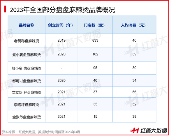 近年来,以麻辣、干拌、盘盘装为特色的川式麻辣烫异军突起。从2021年下半年至今,全国多地涌现出各种“盘盘麻辣烫”品牌,代表品牌的门店数快速增长,受到较大关注。比如老街称盘麻辣烫2021-2022年快速拓店,2021年成立于成都的辣盘盘麻辣烫于2022年3月完成了千万元级别的A轮融资。