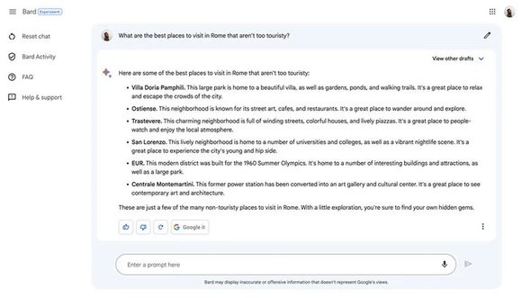 当测试者让它们提供一些关于罗马的旅游建议时,这三款聊天机器人的回答都充满了惊喜。