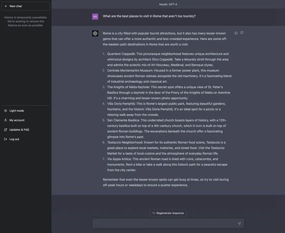 ChatGPT也建议游客去一些不为人知的小众景点游玩,这样更能获得一些新奇的体验。它还补充说,即使是不知名的景点也会有高峰时段,建议游客们尽量在非高峰时段或是工作日去游览。
