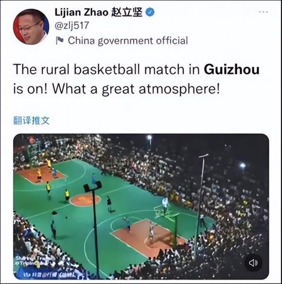 也是从这个视频开始,这场村级的篮球比赛受到了更多的关注到,《贵州日报》在26日发表了报道,随后更多央级媒体,人民日报、新华网等也加入了报道行列。连时任中国外交部发言人的赵立坚也在海外社交平台盛赞“村BA”的现场氛围。
