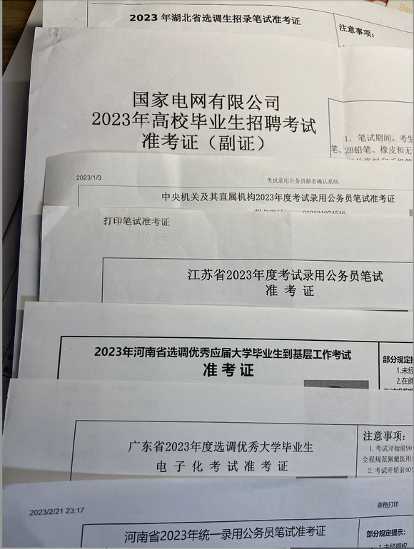 考公之外,他还向国企、央企投递出近两百份简历,如今手握十多个offer的他,仍在进行新一轮的巡考。
