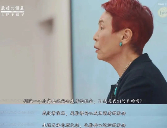上野千鹤子:我对安乐死的观点,既来源于自己的信念,也来源于对现实的考虑。到底是谁、按照什么标准来区分“值得活着的生命”和“不值得活着的生命”呢?患上奥兹海默症的老人、重度残障者就没有生命的价值了吗?我认为,一个进步的社会就是也给这些人以生存机会的社会(我们也不知道自己何时会成为这样的人)。