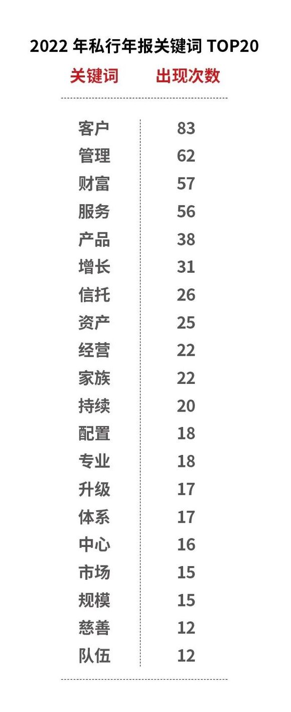 笔者用Python对2022年中国十二大私行年报进行自然语言处理(NLP)的大数据分析,挖掘出2022年中国私人银行业的TOP20关键词。