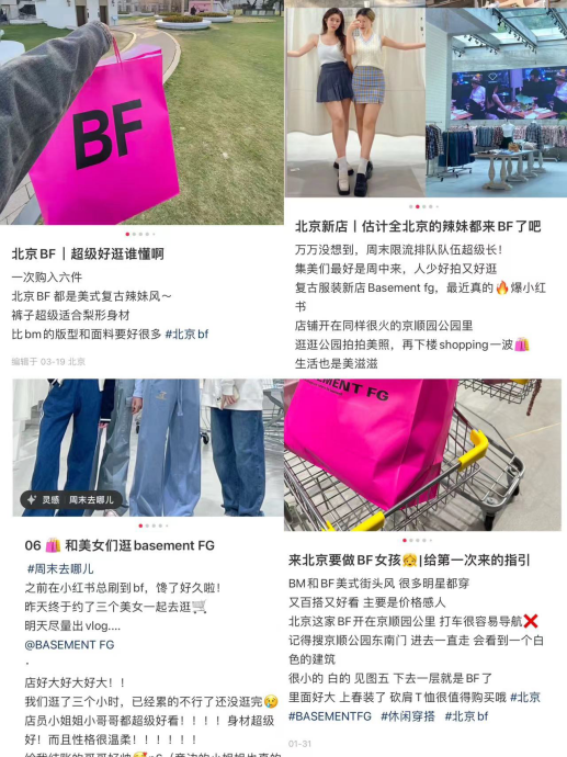 2022年6月9日,Basement FG首店在北京京顺公园开业。自开店以来,BASEMENT FG通过社媒迅速破圈。仅小红书一个平台,BASEMENT FG相关笔记已经积累了超1882万浏览量。