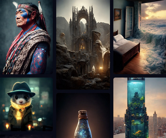 我们似乎可以这样认为,目前的AI制图带有一种强烈的随机性,这种随机性赋予了作品妙手偶得般的创造力与易逝感——就好像同样的提示语不会反馈出同样的图像,但同时也使得作品缺乏作者性和人与材料的互动,使其与创作者生命体验的连接过于微弱。如此的创作过程是疏离的、旁观的、缺乏表达的,文本与图像的互文,知觉与视觉的通感,在一种不可控的被动的视觉接收中被理想化地达成;而用户所感受到的满足,大约或多或少源自一种言出法随般的赋权,以及审美与创造力平均化后的自负,而并非一种真实的投入性的创作体验。