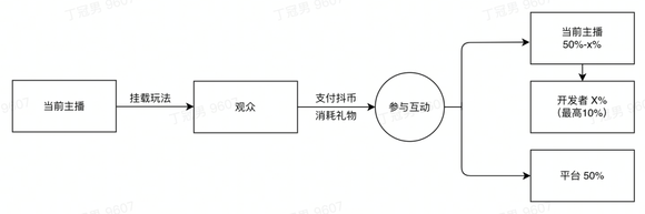 老王表示,相较于其他平台,抖音更重要的变革是联合游戏厂商和主播公会,形成了相对比较完善且具体的商业循环。其中游戏厂商提供创意,打造具体的玩法内容,抖音作为平台方,对玩法内容进行审核,为小玩法提供直播生态,达到一定资质要求的公会,则可以为旗下的主播申请报白,获得挂载小玩法的授权。