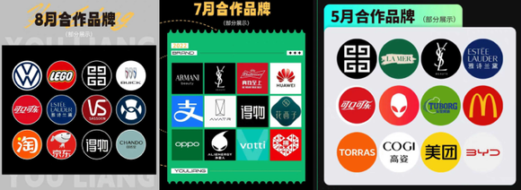 游良文化官方微博于2022年5月-8月更新了商业月报。CBO观察到,2022年5月-8月,与游良文化合作的美妆品牌就包括纪梵希、雅诗兰黛、沙宣、自然堂、阿玛尼、YSL圣罗兰、花西子、高姿、海蓝之谜等美妆品牌。