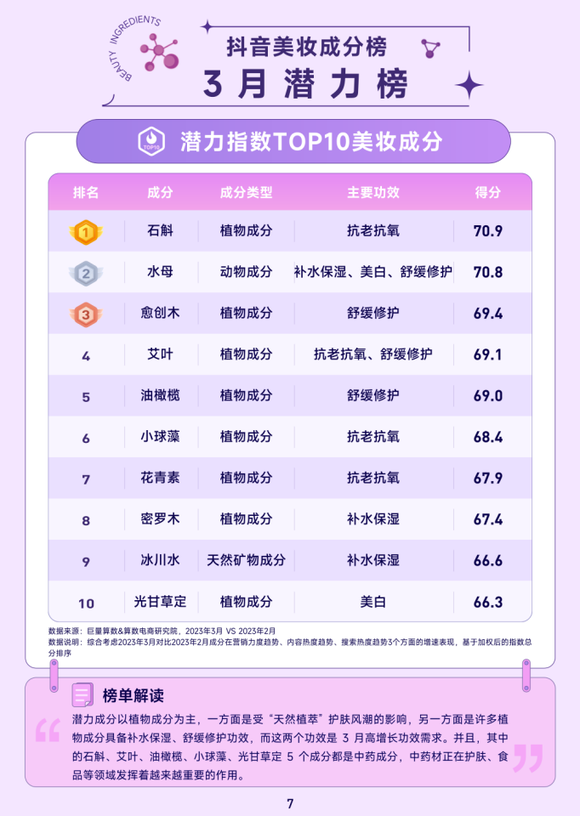 3月抖音美妆潜力成分TOP10