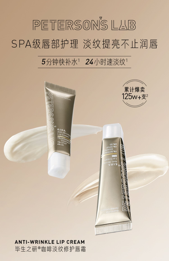 以毕生之研咖啡淡纹修护唇霜为例,就添加1% 南非凤凰草+1% DPHP水润肌肤淡唇纹,4% B5泛醇、柑橘果提取物、油橄榄叶提取物保湿修护不刺激,VC-IP改善深唇乌唇。