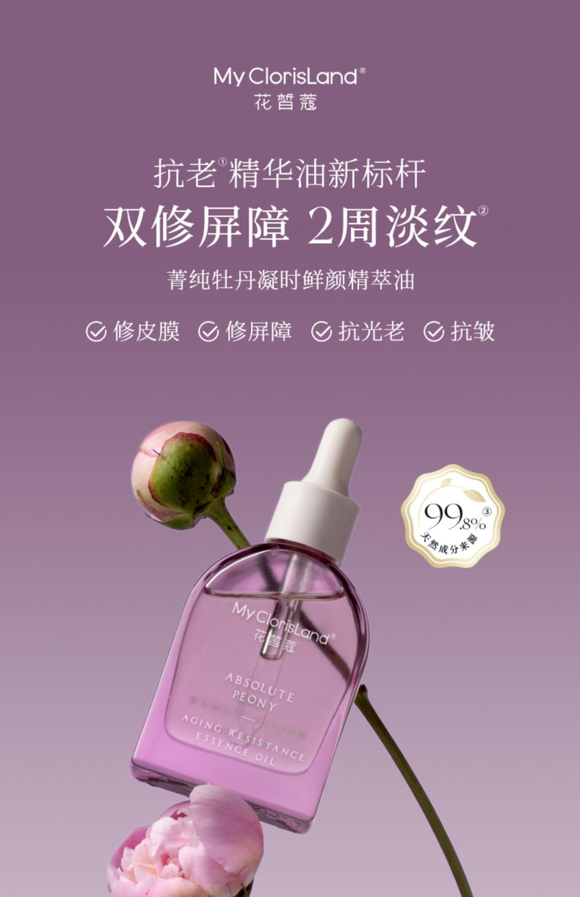 MCL花皙蔻牡丹凝时鲜颜精萃油,以31.58%°牡丹抗老植萃油为基底,结合自研抗老科技BLOOMING oleoactif+中国专利成分光甘草定,有效防氧匀净肤色,采用MCI花皙蔻实验室×法国HallStar专利OEE活性冷萃技术,多维度实现双修屏障,2周淡纹。