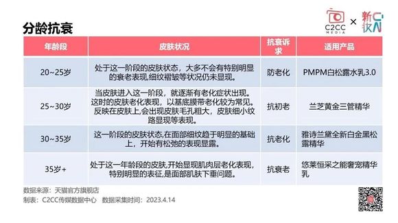 对于众多品牌商而言,统一的抗衰老需求,早就成了过去式。对功效抗衰的市场竞争格局来说,最具冲击性的挑战,就是同样的定位,但细分肌肤的抗衰品类的崛起。针对干皮、油皮、混油皮、痘痘肌、敏感肌、炎症肌等抗衰产品,市场也进行了一次又一次的迭代更新,更容易获得垂直受众的青睐。