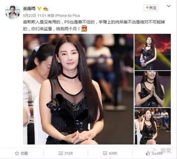 于是张雨绮也是十分注意管理自己的身材,微博上积极晒自己的健身照。