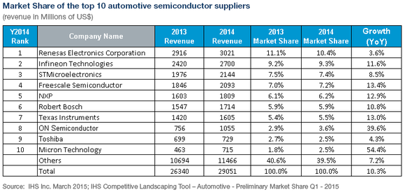 在2014年全球车载芯片市场排行上,NXP仅仅排在第五位上,但是到了2015年它却占据了榜首。为什么?因为它吃掉了排在第四位的飞思卡尔(Freescale)。而现在高通的收购,相当于直接获得了全球15%的车载芯片市场,有钱果然任性啊!