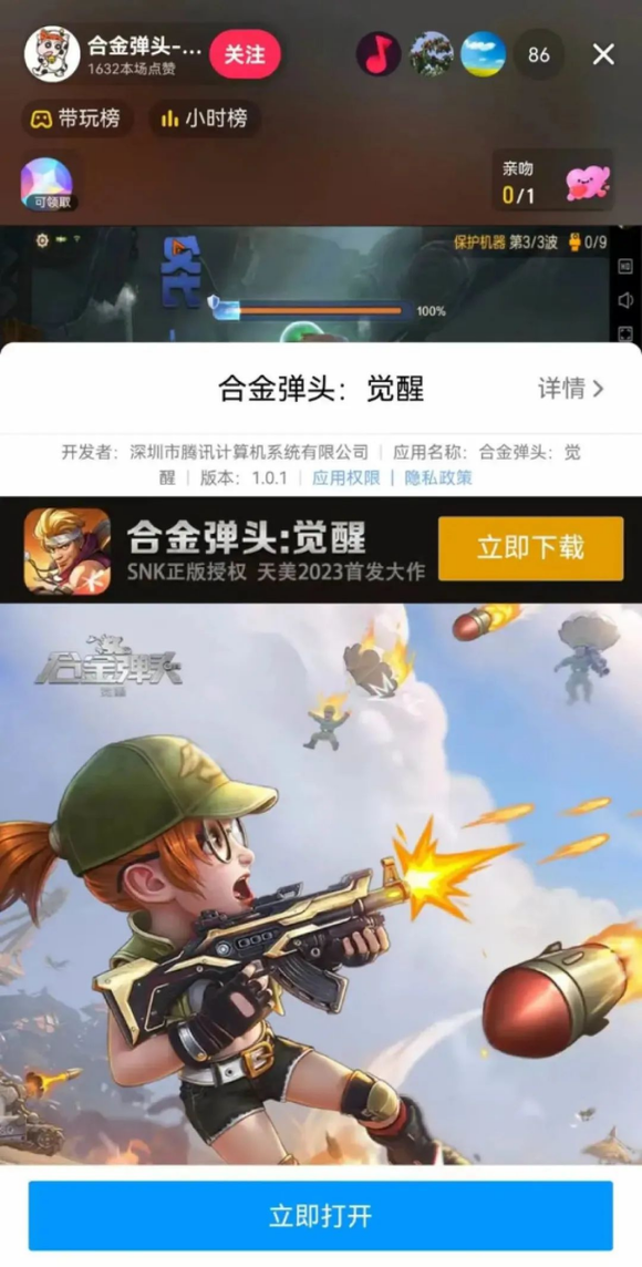 值得注意的是,此次《合金弹头:觉醒》并没有上线抖音【星图x游戏发行人计划】,但却有不少抖音主播“自发性”的挂着合金弹头的前缀在直播带玩《合金弹头:觉醒》,直播间中也挂载了游戏下载链接。