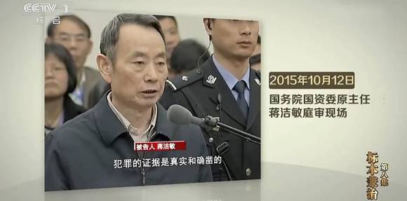 两天前,中央电视台播放与中纪委联合制作的大型反腐电视专题片《永远在路上》第8集《标本兼治》,第33分钟,蒋洁敏庭审的现场画面再次曝光。随后,在一个看似监狱的铁栏背景的房间里,面对镜头,蒋洁敏肩披一件厚棉袄,双手十指紧扣,像背台词一样,操着夹带地方口音的普通话平静地讲述着自己的过往罪行。