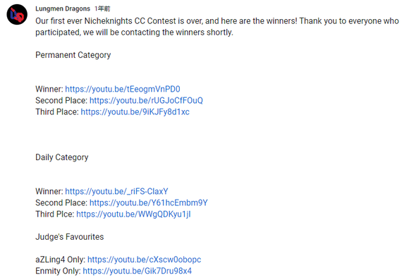 LungmenDragons这个账号更新了一年之后,ZaFang想举办以Nicheknights为基础的比赛作为攻略组一周年的活动,他给这次活动命名为Nicheknights Contest。正是这次比赛让他们在海外玩家群体中获得了更大的知名度。