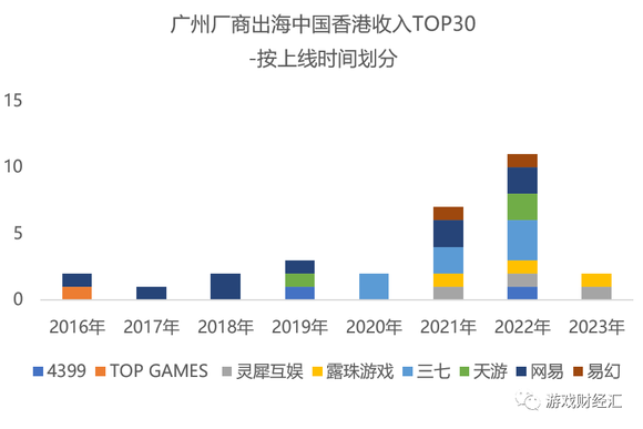 通过上图不难发现,灵犀互娱、三七、露珠游戏近两年飞速发展,目前已经成为广州厂商出海中国香港市场的重要力量。