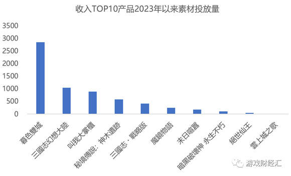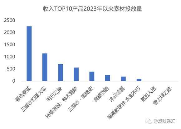 除了刚上线的《暮色双城》以及去年10月上线的《三国志幻想大陆》,其余产品投放素材量均较低。