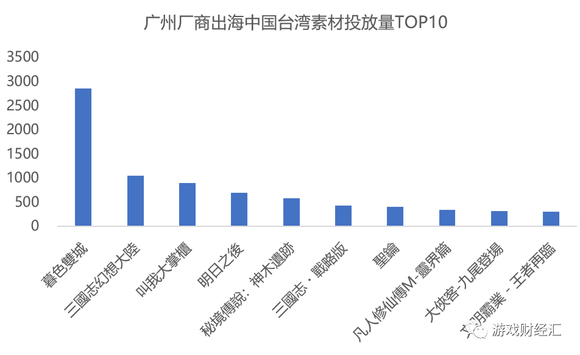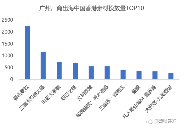 值得关注的是,广州厂商在中国香港和中国台湾两地素材投放量TOP10的产品完全一致,只是排序略有不同。