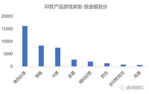 角色扮演类入围产品数量最多,但总收入不及策略。