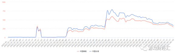 比如,从投放趋势来看,根据DataEye数据,《暮色双城》在中国港台市场投放趋势高度趋同,中国台湾市场的投放量略高于中国香港。