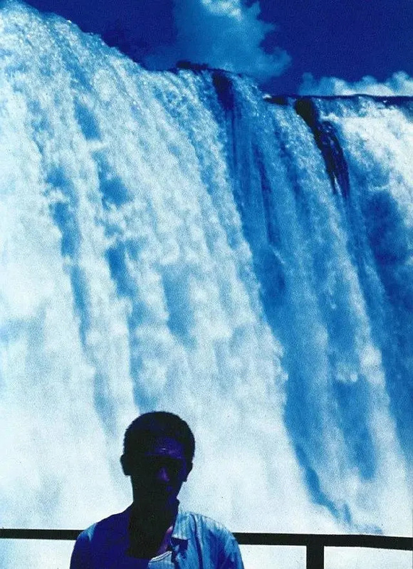 我灵机一动,提议让直升机侧着飞,在瀑布上空盘旋。飞行员说他可以试试,但我们的燃料快用完了,只能实验一次。