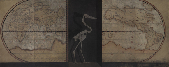中国传统美学中的“对仗”也给予了徐累创作灵感。“受过中国文化熏陶的人,都知道我们文化当中有一种非常奇妙的修辞学,就是对仗,”他说,“这时刻提醒我们,在这个世界当中,我们所处的位置要平衡两个极端,这是中国人处事的态度和世界观。”古今、东西的平衡与并置于是成为他的另外一个重要创作主题,在“浮生-时间的平行”这一单元呈现。