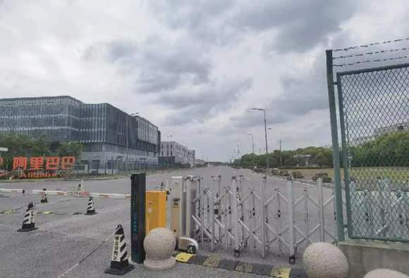 待泰州厂关停后,纬创资通在大陆只有昆山、中山、成都、重庆四家工厂。对比马路对面的阿里巴巴办公楼,搬空设备拉上铁门的泰州厂显得寂寞空荡。