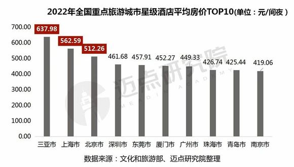 50个重点旅游城市平均房价情况:高于全国平均水平(318.48元/间夜)的城市有28个,占比超占一半。其中,三亚市以637.98元/间夜的绝地优势,遥遥领先,位列全国各重点旅游城市榜首。 其次是上海、北京,平均房价均超500元/间夜。其余位列前十的城市,平均房价均高于400元/间夜,包括深圳、东莞、厦门、广州、珠海、青岛和南京,从中可以看出大湾区核心城市整体表现突出。