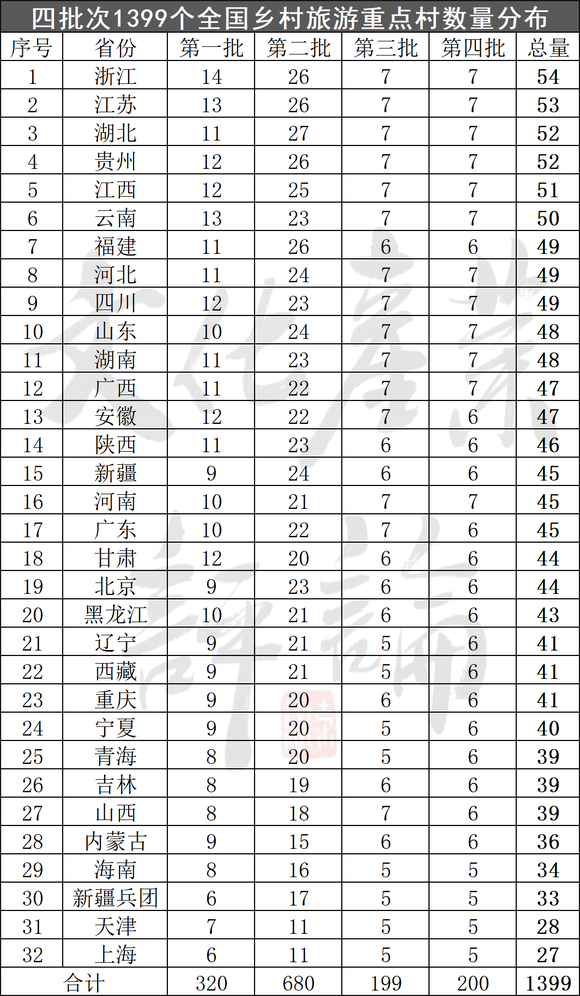自2019年起,文化和旅游部会同国家发展改革委联合启动全国乡村旅游重点村镇名录建设工作,我国乡村旅游产业呈现出集群化、规模化、品牌化发展的新局面。截至2022年底,两部委先后推出四批1399个全国乡村旅游重点村和两批198个全国乡村旅游重点镇(乡),并在政策倾斜、人才培训、宣传推广、金融贷款等方面加大支持力度。