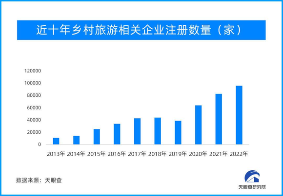 据文化和旅游部数据显示,疫情发生前的2019年,我国乡村旅游接待人次达到30.9亿,占国内旅游人次的一半。另据天眼查的数据显示,截至今年3月,我国乡村旅游相关企业已经超过50.6万家,其中2022年新增注册企业达到9.6万余家,增速高达24.8%。这一数据充分表明,越来越多的企业开始看好乡村旅游产业。