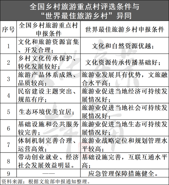 那么,国内全国乡村旅游重点村评选条件与世界“最佳旅游乡村”有哪些不同?