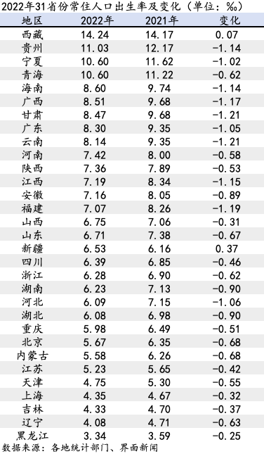 即便是出生率较高的省份也不可避免地遭遇出生率下降的困境。