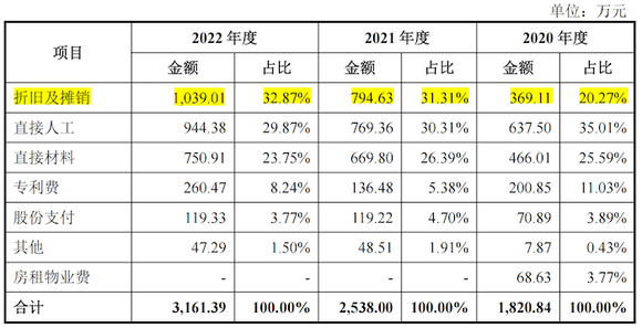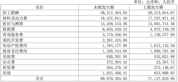 公司表示:系报告期根据研发需要采购相关设备,故而研发相关折旧费用逐年上涨。其中2020年9月研发用升华仪、X射线光电子能谱系统、OLED IVL测试系统等价值较高的设备达到预计可使用状态;1台真空蒸镀机、3台OLED寿命测试设备于2021年2月和5月达到预计可使用状态,设备价值高;2022年1月新增1台真空蒸镀机,2022年8月新增大气光电子计数能谱仪。
