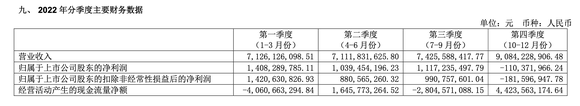 去年前三季度,明阳智能分别盈利14.08亿元、10.39亿元、11.17亿元;四季度亏损1.1亿元,扣非净利亏损1.8亿元。