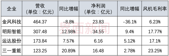 一季度,明阳智能、电气风电出现亏损,金风科技、三一重能净利下降。