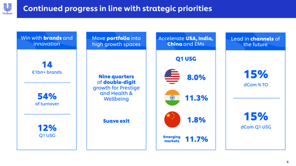 联合利华一季度五大事业群业绩