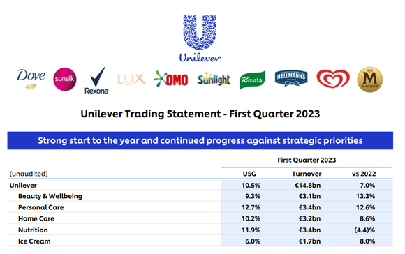联合利华首席财务官Graeme Pitkethly则在会上补充说道,随着疫情限制的取消,中国的实体店购物和餐厅堂食得以恢复。“一季度,联合利华中国实现了低增长,价格和销量均呈正增长。与本季度初相比,本季度末的增长要强劲得多。”
