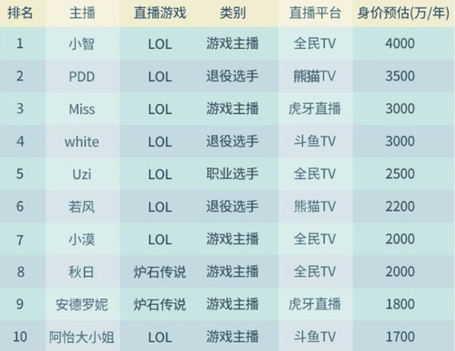 而明星之下,则是行业明星,他们在各自领域拥有相当知名度,和直播平台签约,入驻一年的费用往往也要上千万。