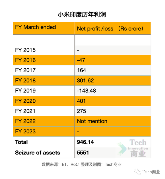 至近期当地媒体及公司注册处披露的财年数据,小米印度公司在印累计利润额为94.6亿卢比(约为1.16亿美元)。当前被扣押的资产金额是小米印度历年利润总和的5.9倍。从利润收益的角度来看,小米印度九年几乎白干一场。